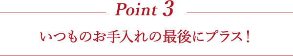 朝・夜の洗顔のあと、手のひらに適量(2~3プッシュ程度)をとり、肌になじませます。